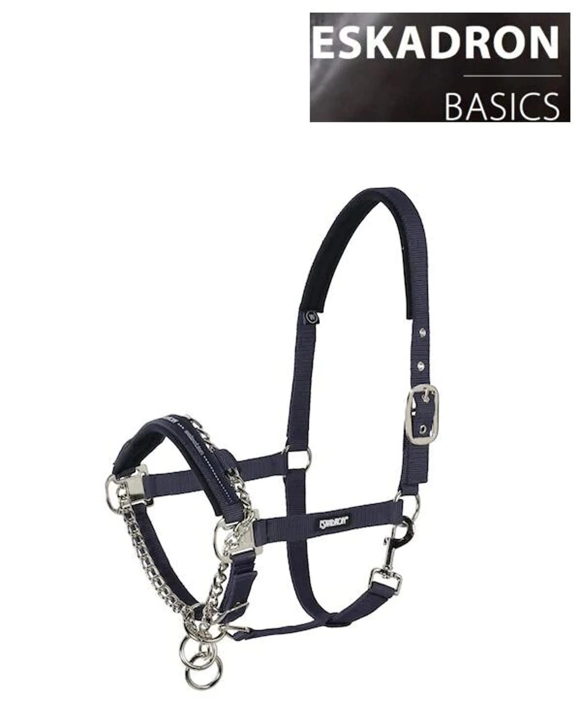 The Eskadron Control headcollar. Leading young or disobedient horses can have dangerous consequences for the human as well as the horse. Most horse owners use a lead chain to deal with this problem. In the case of the Headcollar Control with integrated lead chain it is possible to make use of this function in three different stages.